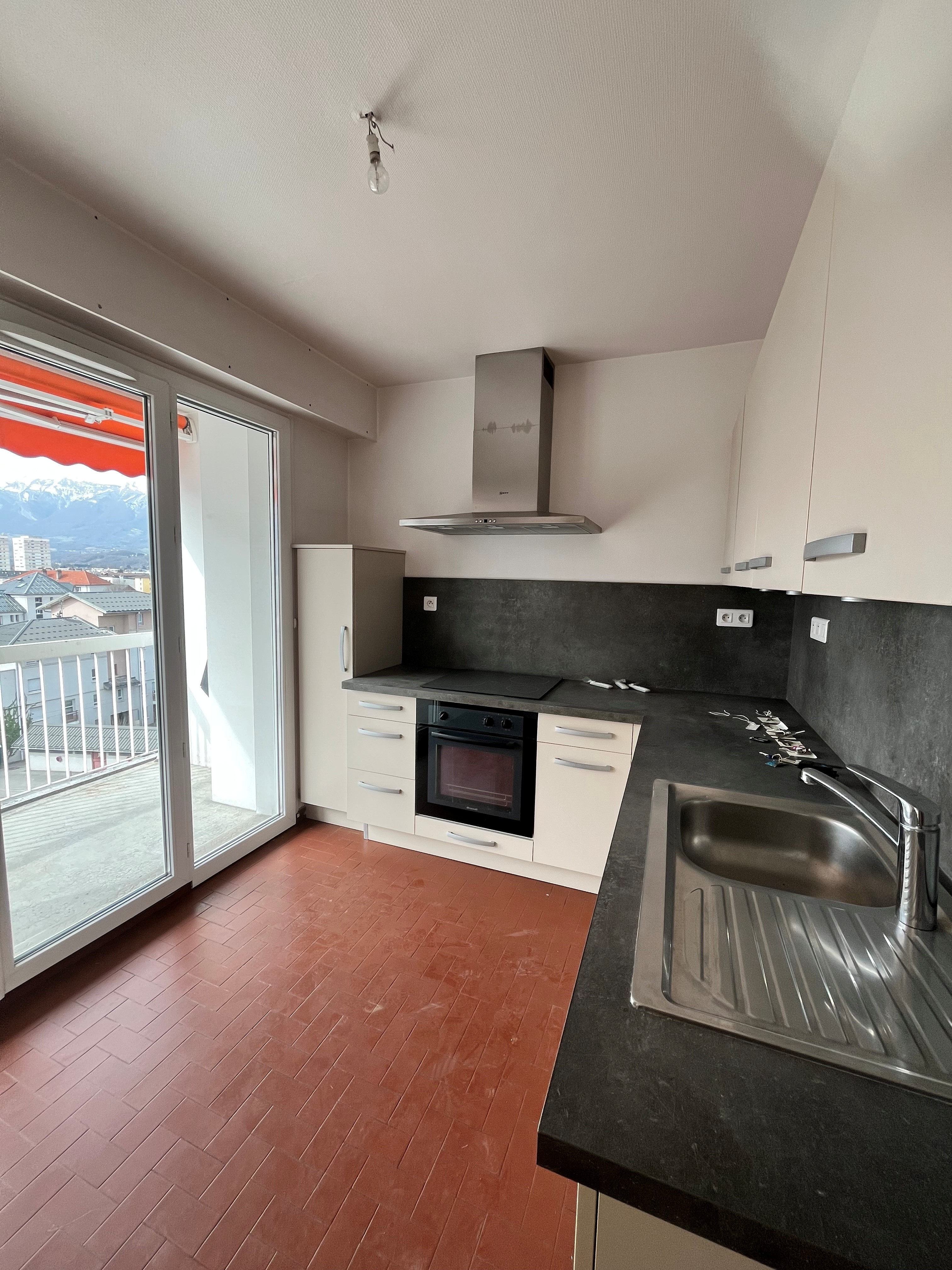 Cuisine indépendante ouverte sur le balcon.