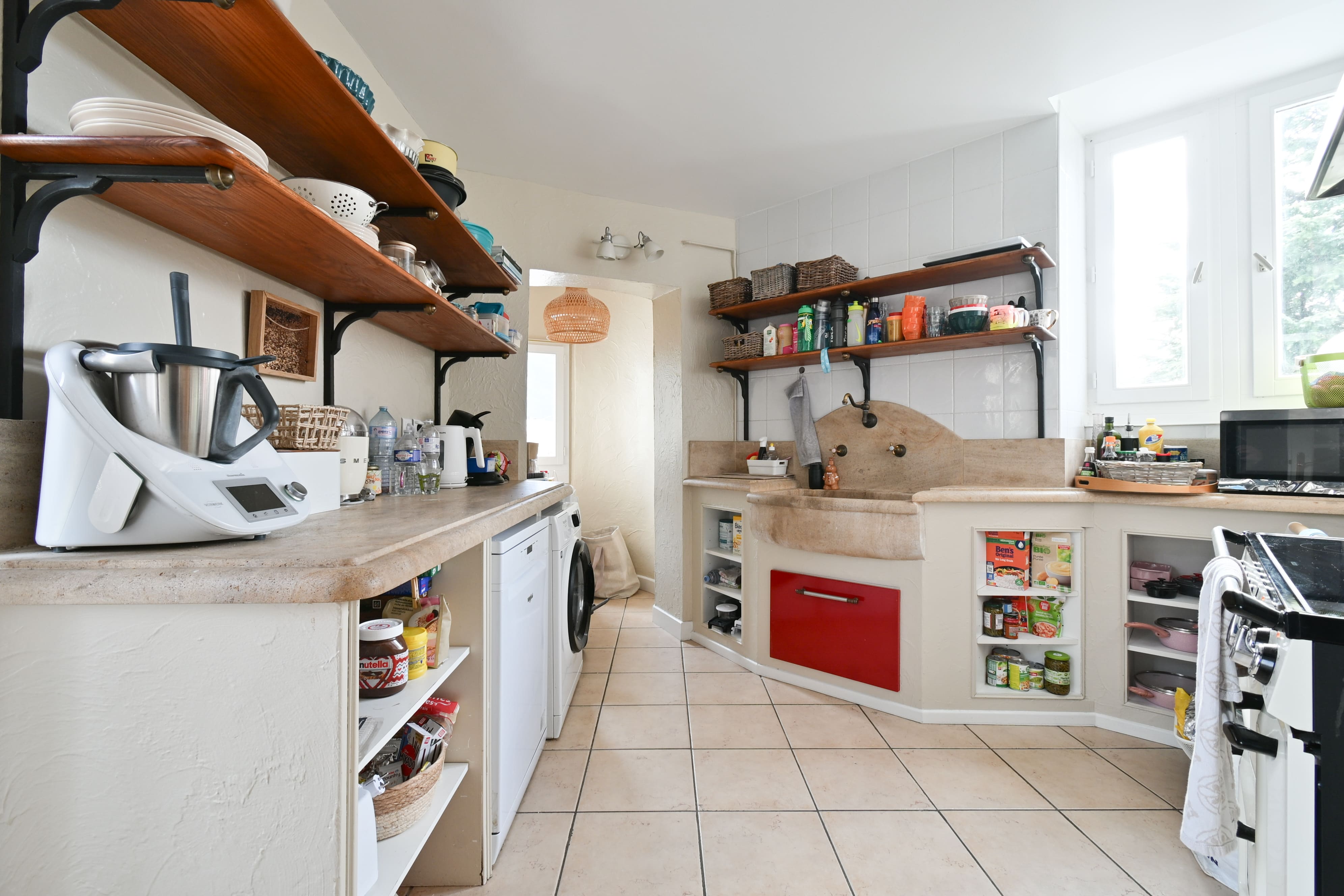 Pour commencer, le rez-de-chaussée s’organise autour d’un hall d’entrée, d’une cuisine donnant directement sur le jardin, d’un espace pouvant servir de salon-séjour ou d'une grande chambre, d’une salle de bain avec WC suspendu et d'une chambre. De par sa configuration actuelle, il offre la possibilité de créer un appartement indépendant de type 2, idéal pour un membre de la famille ou un projet locatif.
