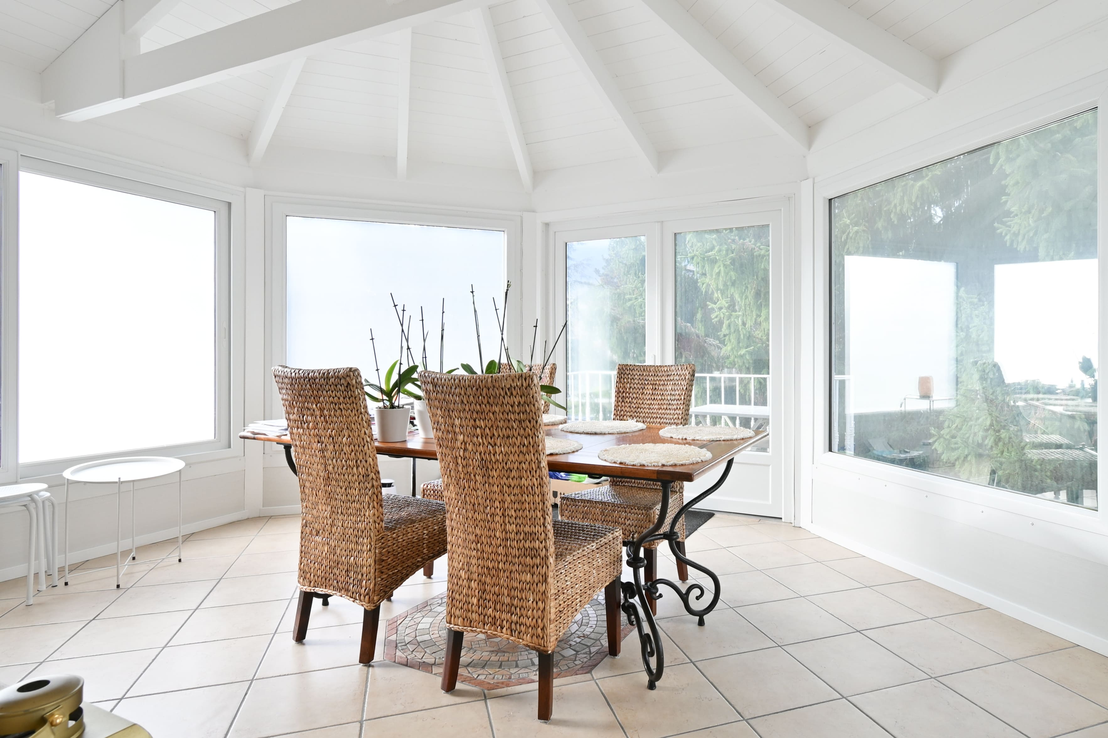 Au premier étage, un dégagement possédant un petit balcon dessert les pièces de vie. Vous trouverez ainsi, un salon lumineux avec véranda et balcon, une salle à manger spacieuse, ainsi qu’une cuisine accueillant un renfoncement arrondi où se trouve la tourelle. Enfin, un WC complète cet étage.