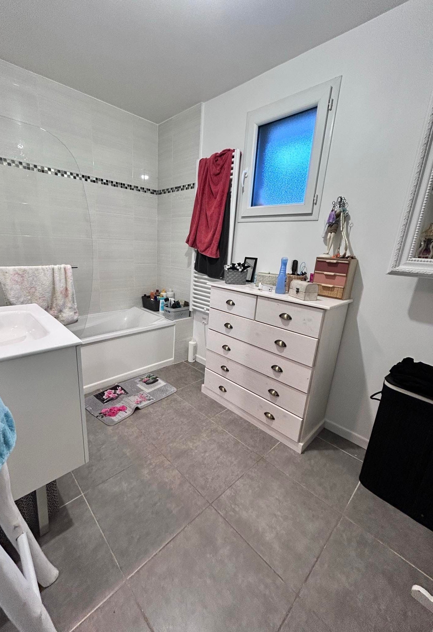 À l’étage, le dégagement dessert trois chambres avec placards intégrés et une grande salle de bain avec fenêtre, offrant un espace nuit confortable et fonctionnel pour toute la famille.